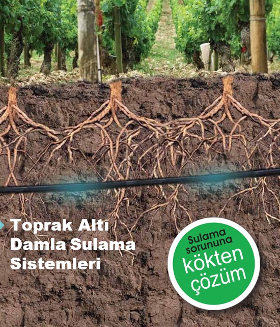 1 saatlik sulamadan 10 saat sonra topraktaki su dağılımı Toprak üstü sulama ile aynı miktardaki suyu toprak altından verdiğimizde, toprakta % 46 daha fazla bir alanın ıslandığı görülmektedir. Bu sistem ile toprağın suya olan doygunluğu azaltılarak köklerin hava alması için daha geniş bir alan sağlanır. Suyun topraktaki kılcal yollarda hareketi arttırılarak, derinlere sızma nedeni ile oluşacak su kayıpları da en aza indirilir.